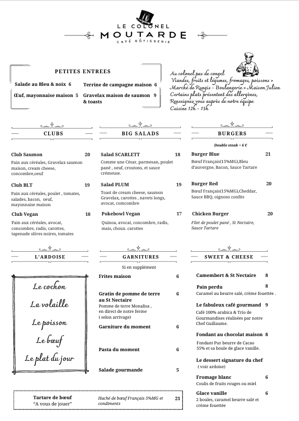 N'hésitez pas à demander à notre équipe les ingrédients des plats , nous nous ferons une joie de vous répondre.